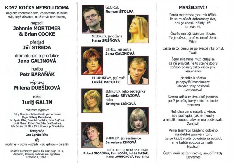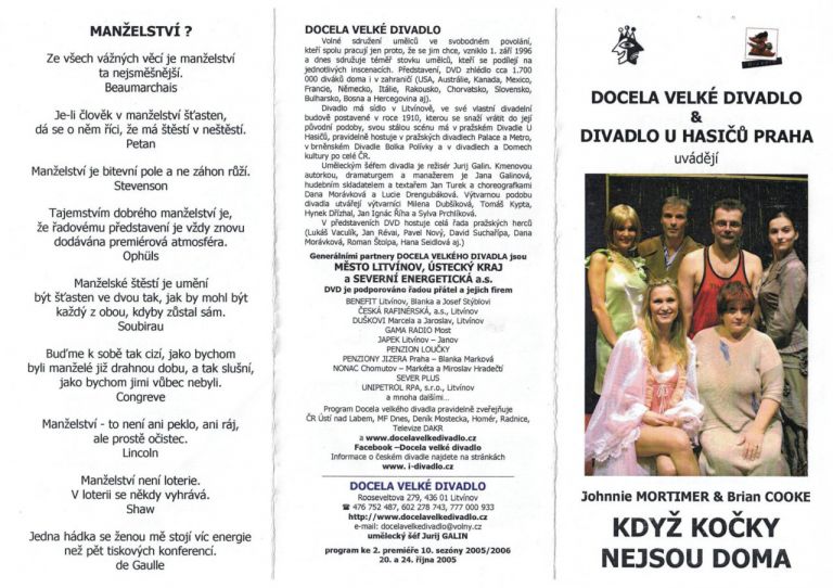 Divadelní představení KOČKY NEJSOU DOMA, zájezd do divadla v Karlových Varech, 21.3.2017
