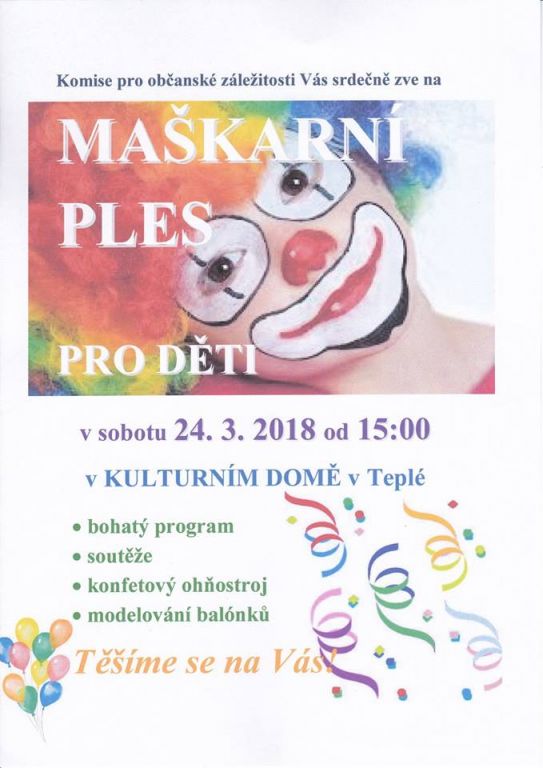 Maškarní ples pro děti 24.3.2018, DK Teplá