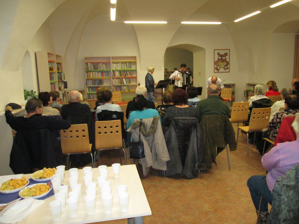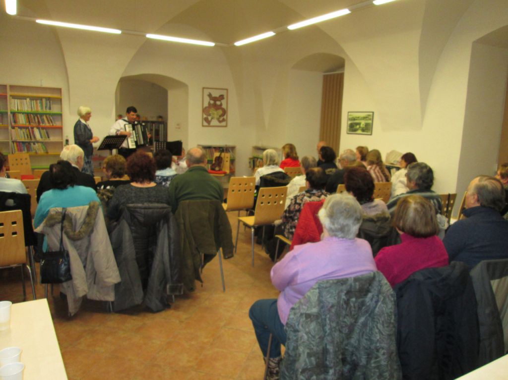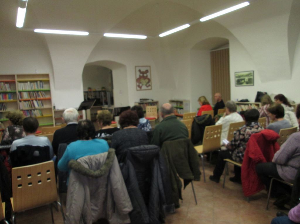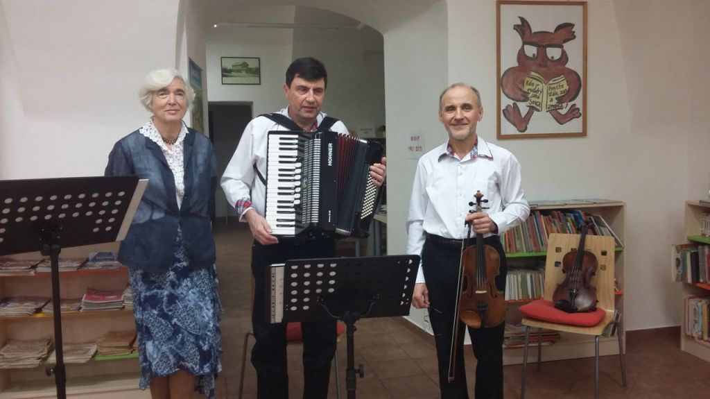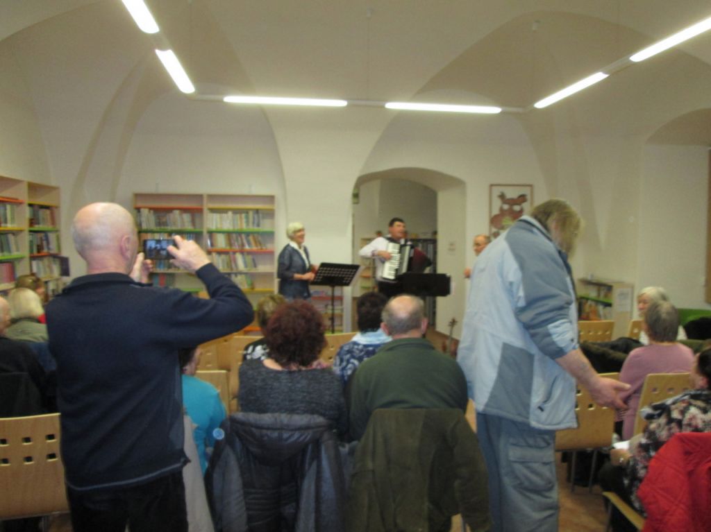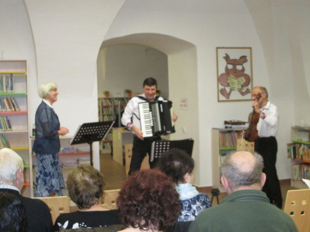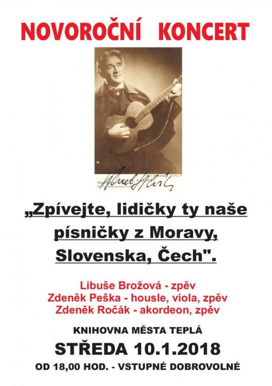Novoroční koncert "Zpívejte lidičky ty naše písničky, z Moravy, Slovenska, Čech", knihovna městaTeplá, 10.1.2018 - vokálně instrumentální trio z Mariánských Lázní