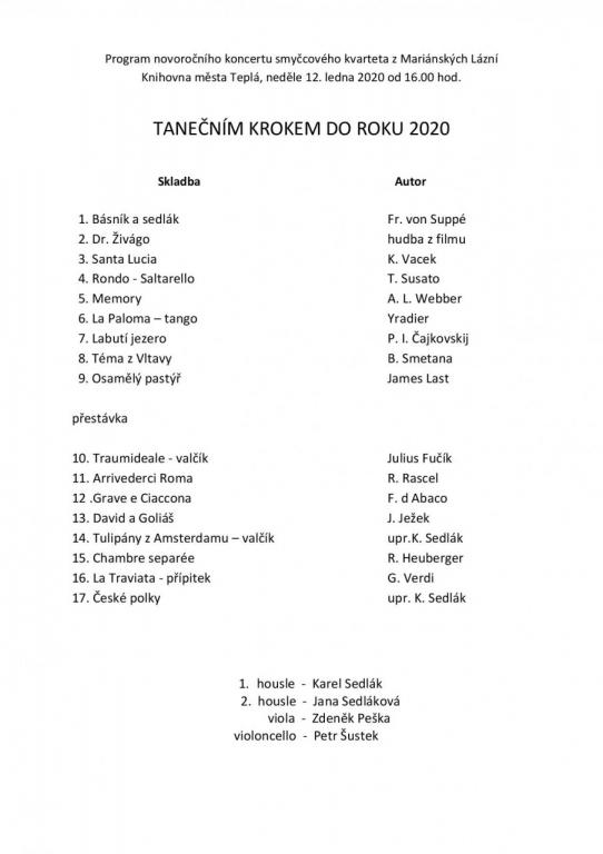 Novoroční koncert Smyčcového kvarteta z Mariánských Lázní, 12.1.2020, knihovna města Teplá